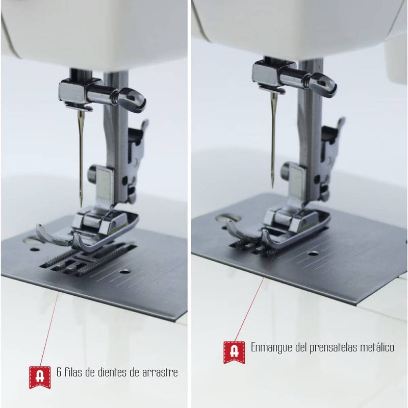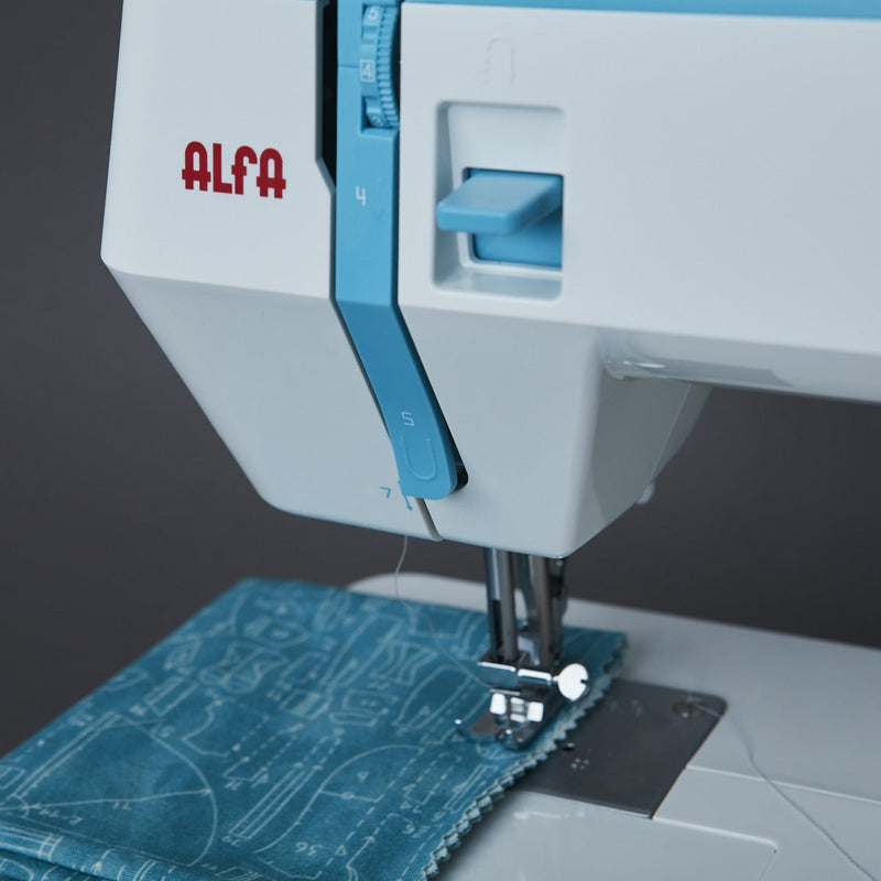 Esta maquina permite ajustar tanto o comprimento do ponto como a largura do ponto zig zag ate 5 mm, possibilitando uma variedade de tarefas como ajustar roupas, colocar fechos, fazer bainhas, entre outros. Mesmo sendo simples, a Alfa Style 30 lida facilmente com todos os tipos de tecidos, gracas aos seus 6 filas de dentes de arrasto. A placa de cobertura inclui numeracao em polegadas e mm para garantir costuras retas e precisas.
