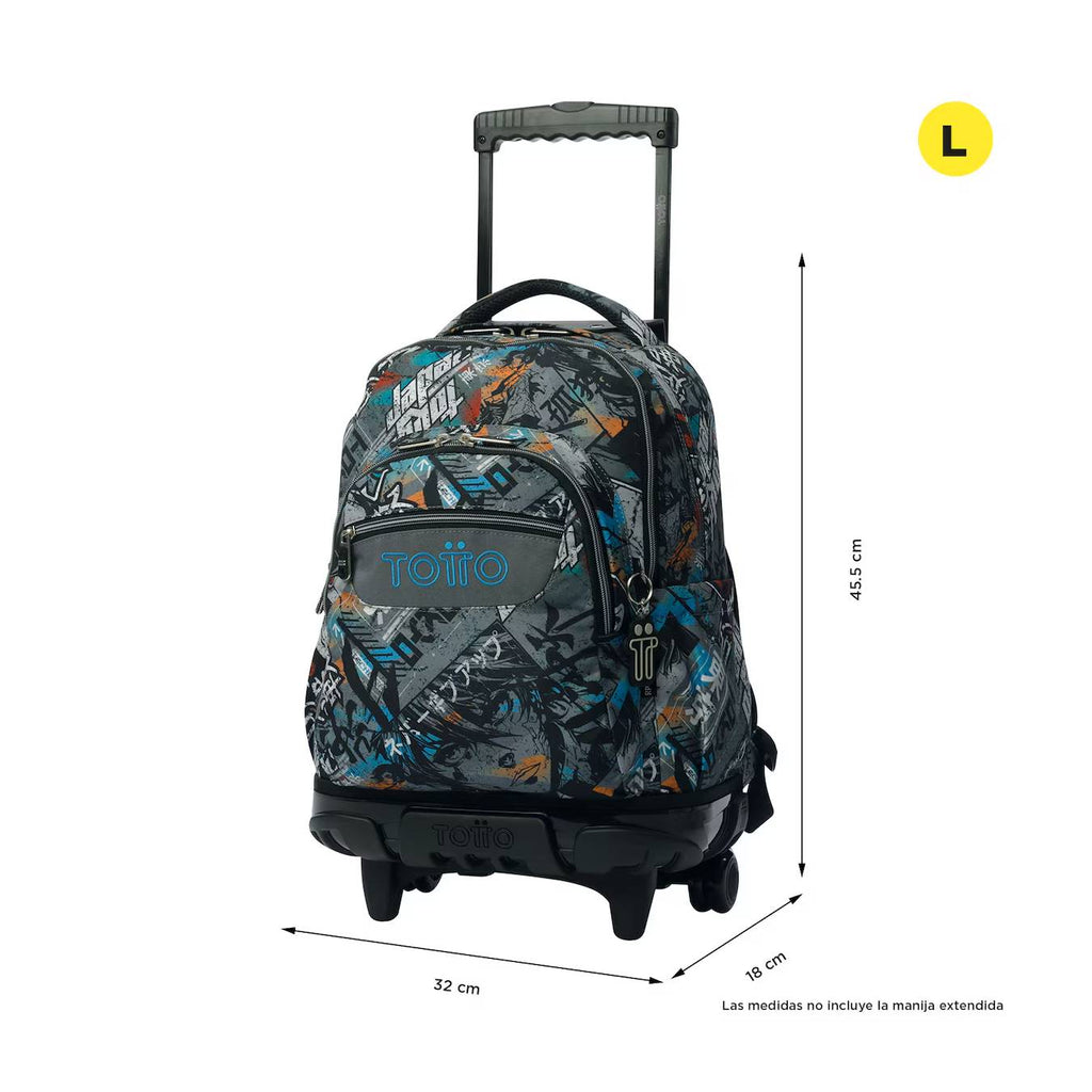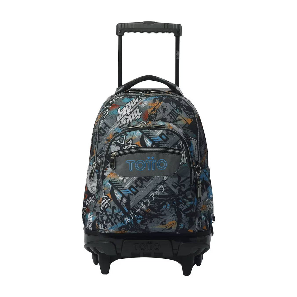Mochila escolar com rodas em design anime cinza escuro com toques azuis da marca Totto