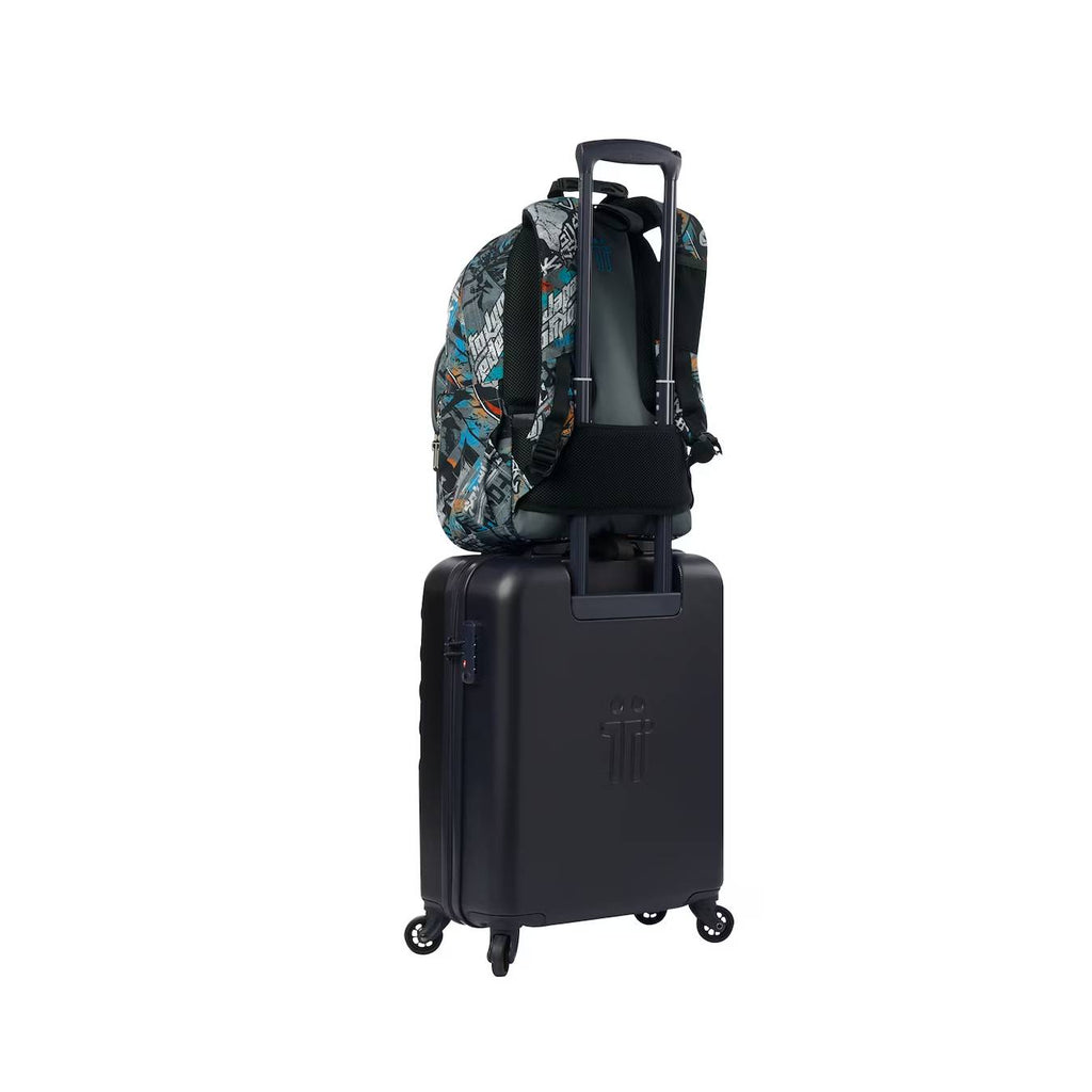 Mochila Escolar Adaptável a Carrinho com Design Anime Cinza Escuro com Toques de Azul da marca Totto