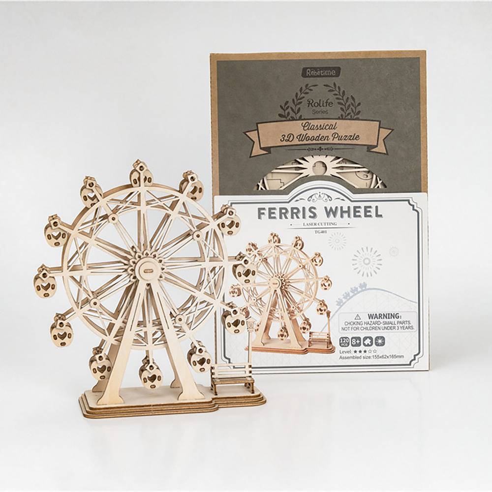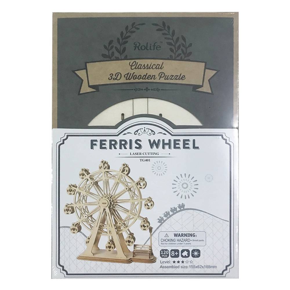 Se es fa de maquetes 3D, vais adorar a Maqueta Roda Gigante Feira Robotime! Este kit de madeira pre cortada da marca Robotime permite te construir a tua propria Noria de Feira. Com 120 pecas cortadas a laser, este kit e uma aventura emocionante que te proporcionara horas de diversao. As dimensoes da maqueta montada sao de 15 x 6 x 16cm, sendo feita totalmente em madeira. Com instrucoes passo a passo, nao precisas de ferramentas adicionais para montar esta maqueta única e funcional. Recomendada para maqueteiros a partir dos 12 anos, este produto e o codigo TG401. Aproveita e mergulha no mundo das maquetes com a Maqueta Roda Gigante Feira Robotime!