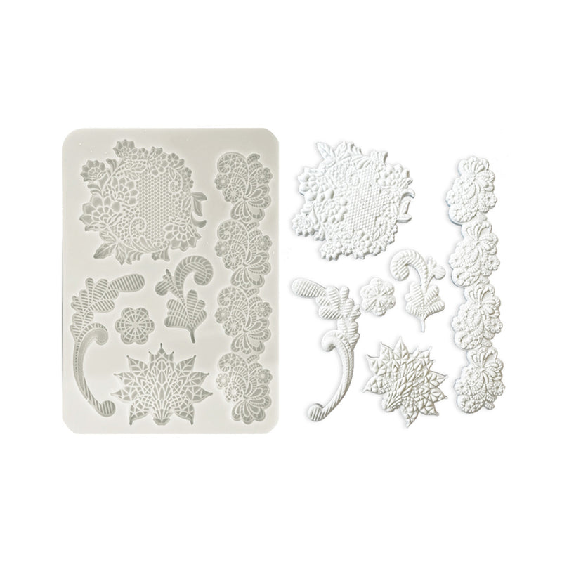 Com este molde de silicone da coleção Brocante Antiques da Stamperia, pode criar figuras florais em forma de renda que darão aos seus espaços um aspeto vintage.