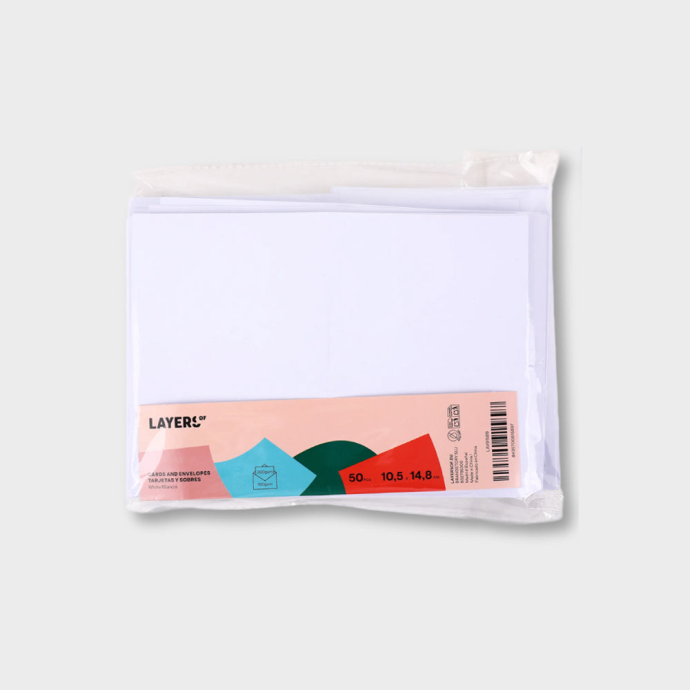 Set 50 Sobres Blancos y 50 Tarjetas Blancas tamaño A6 (10,5x14,8 cm) de la marca Layers Of