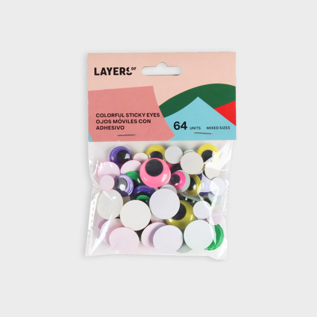 Pack de 64 olhinhos autocolantes coloridos da marca Layers Of.