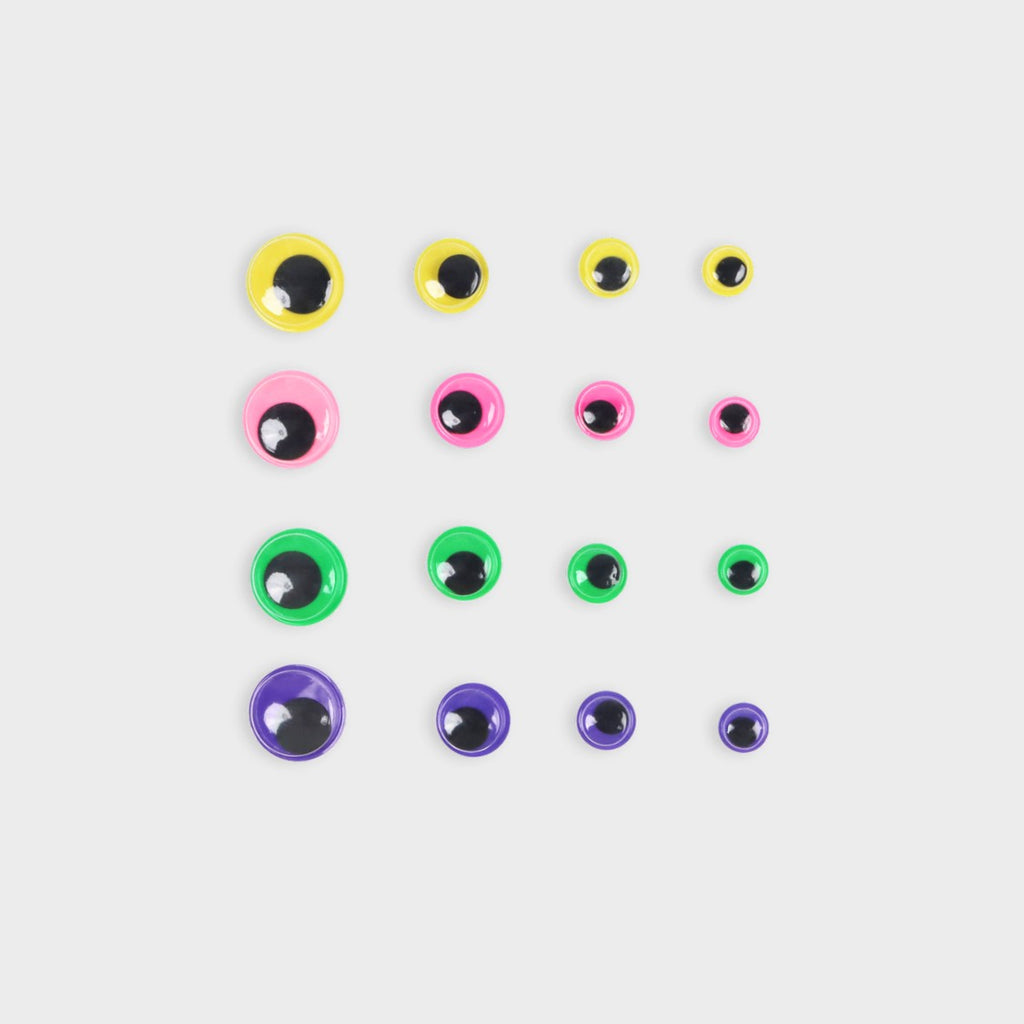 Estes olhos arregalados possuem um prático suporte adesivo que os torna fáceis de aplicar em diversas superfícies, acrescentando personalidade e movimento às suas figuras e criações. Perfeitos para atividades escolares, projetos de arte "faça você mesmo" e trabalhos manuais.