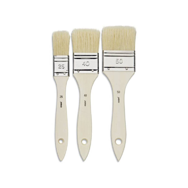 Espátula de envernizamento fabricada com pêlo sintético da série 364. Este utensílio caracteriza-se pelas suas fibras finas, pelo seu cabo de madeira e pela ponteira de alumínio não soldada. Adequado para trabalhar com tinta acrílica, guache, gesso, etc. Também é ideal para aplicar o verniz de acabamento final.