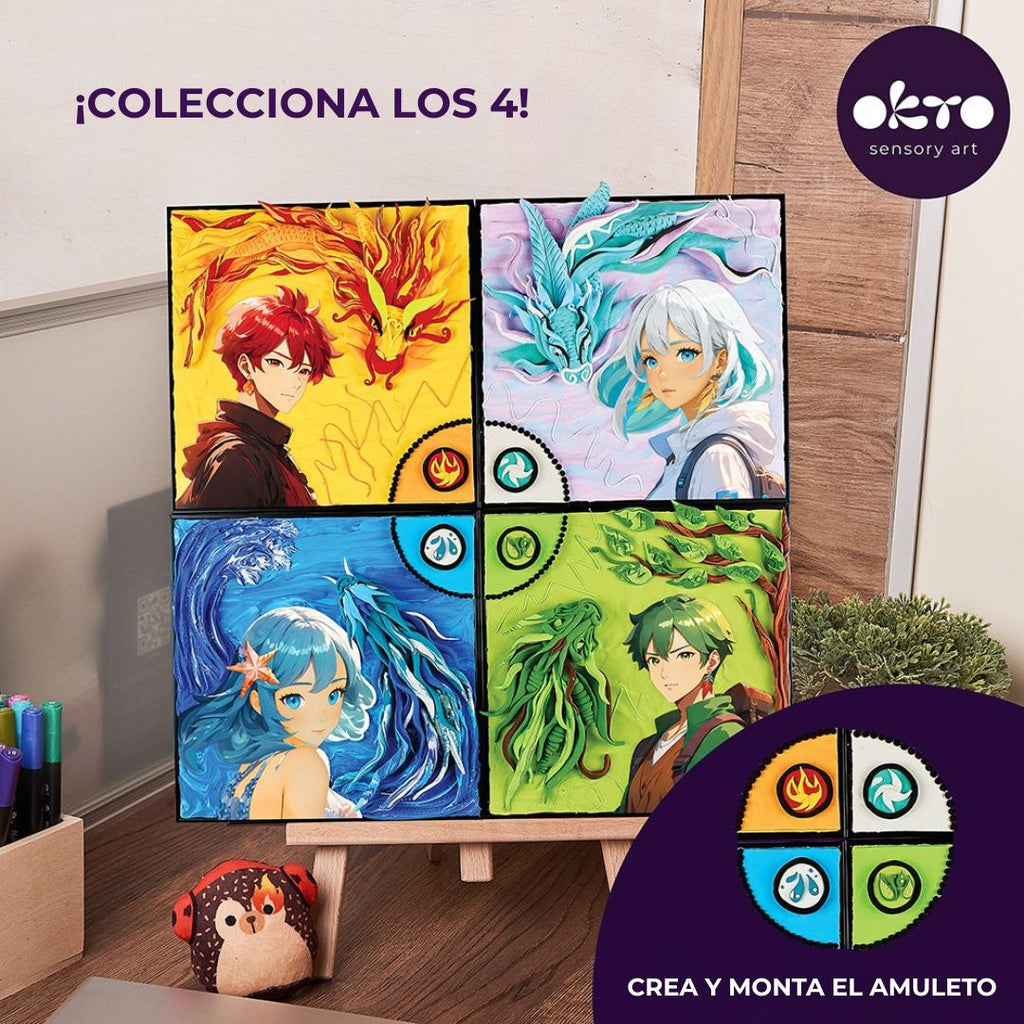 Los lienzos OKTO 3D toman la pasta de modelar Air Dry Clay para crear obras con volumen y detalles en relieve. En este kit encontrarás la ilustración de una chica anime inspirada en el elemento Aire, cuya figura se completa añadiendo arcilla alrededor del diseño para dar vida a la composición.