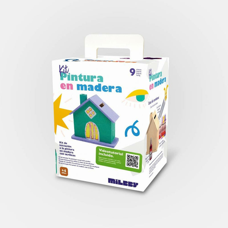 Este Kit de Iniciacao à Pintura Acrílica em Madeira da marca Milbby e simplesmente incrível para te introduzires no mundo da pintura e personalizacao de suportes, atraves desta adoravel casinha de madeira. Com a mistura das tintas acrílicas, poderas criar uma vasta gama de cores e realcar detalhes com o brilho do glitter do teu pegamento. Alem disso, podes utilizar papeis de scrapbooking para decorar ou ate experimentar tecnicas de mix media com stencils.