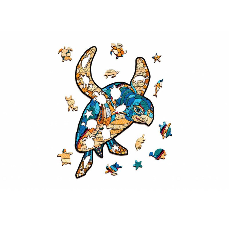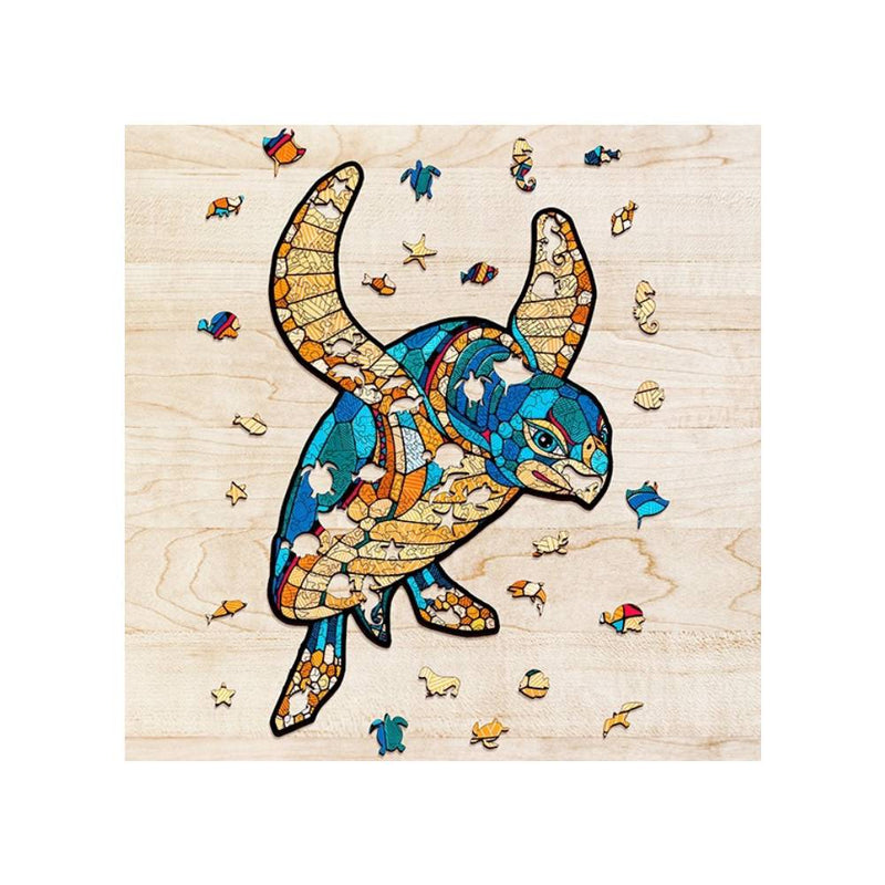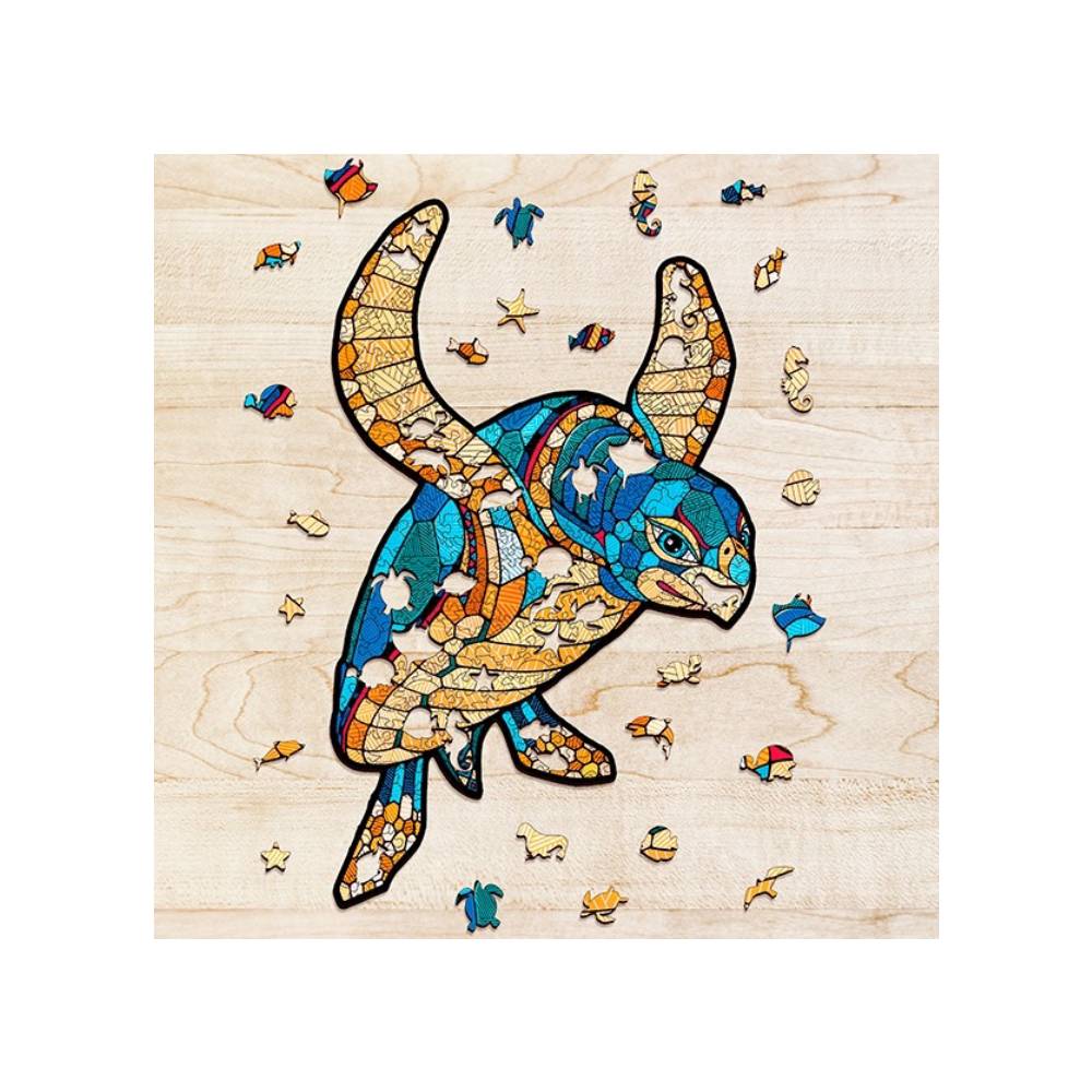 Este incrível Puzzle de 80 Pecas Tartaruga da marca Eco Wood Art e simplesmente espetacular! Com um design divertido em forma de tartaruga, este puzzle inclui pecas com diferentes animais marinhos que se encaixam perfeitamente. Podes desfrutar sozinho ou com amigos completando este entretenido e desafiante quebra cabecas. Uma vez terminado, podes emoldura lo para decorar a tua casa ou ate mesmo oferecer como presente. As pecas sao feitas de madeira de alta qualidade, garantindo durabilidade e resistência.