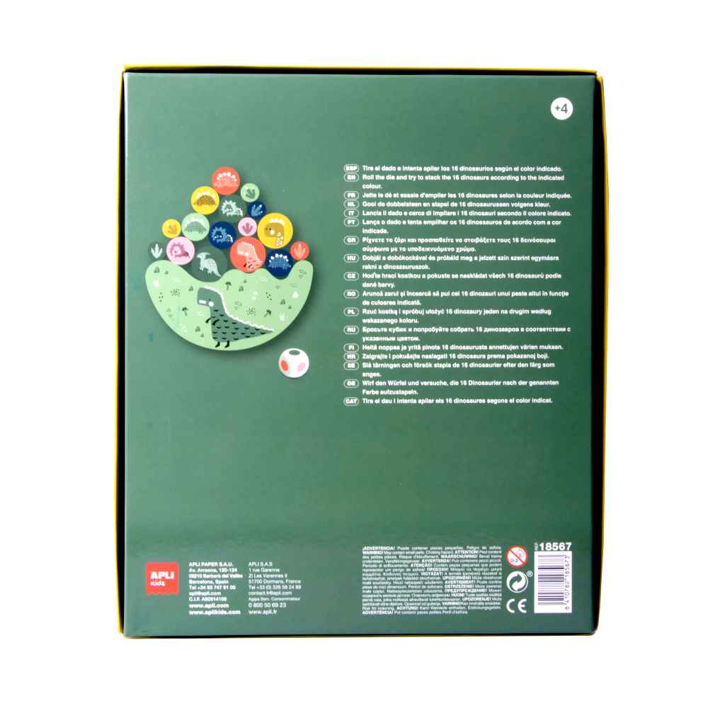 Este Puzzle Equilíbrio Dinossauros de 16 Pecas da marca Apli Kids e simplesmente incrível! Com ele, as tuas criancas vao poder desenvolver suas habilidades motoras, memoria, criatividade e concentracao de uma forma super divertida. O jogo consiste em empilhar os dinossauros de diferentes tamanhos, de acordo com a cor indicada pelo dado, sem deixar que percam o equilíbrio. Assim, vao aprender a lidar com a competicao, a ganhar e a perder, de uma forma lúdica e educativa.