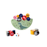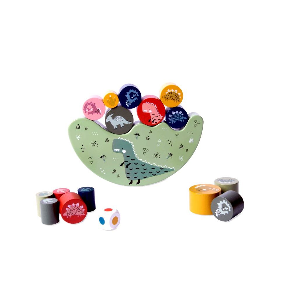Com uma tematica envolvente do Mundo dos Dinossauros, este jogo e recomendado para criancas a partir dos 4 anos de idade. Alem de proporcionar momentos de diversao em família, ajuda a melhorar as interacoes sociais e a expressao de emocoes dos mais pequenos. O Puzzle Equilíbrio Dinossauros inclui 16 pecas de madeira com desenhos encantadores, uma base de madeira que se balanca e um dado com as cores das pecas.