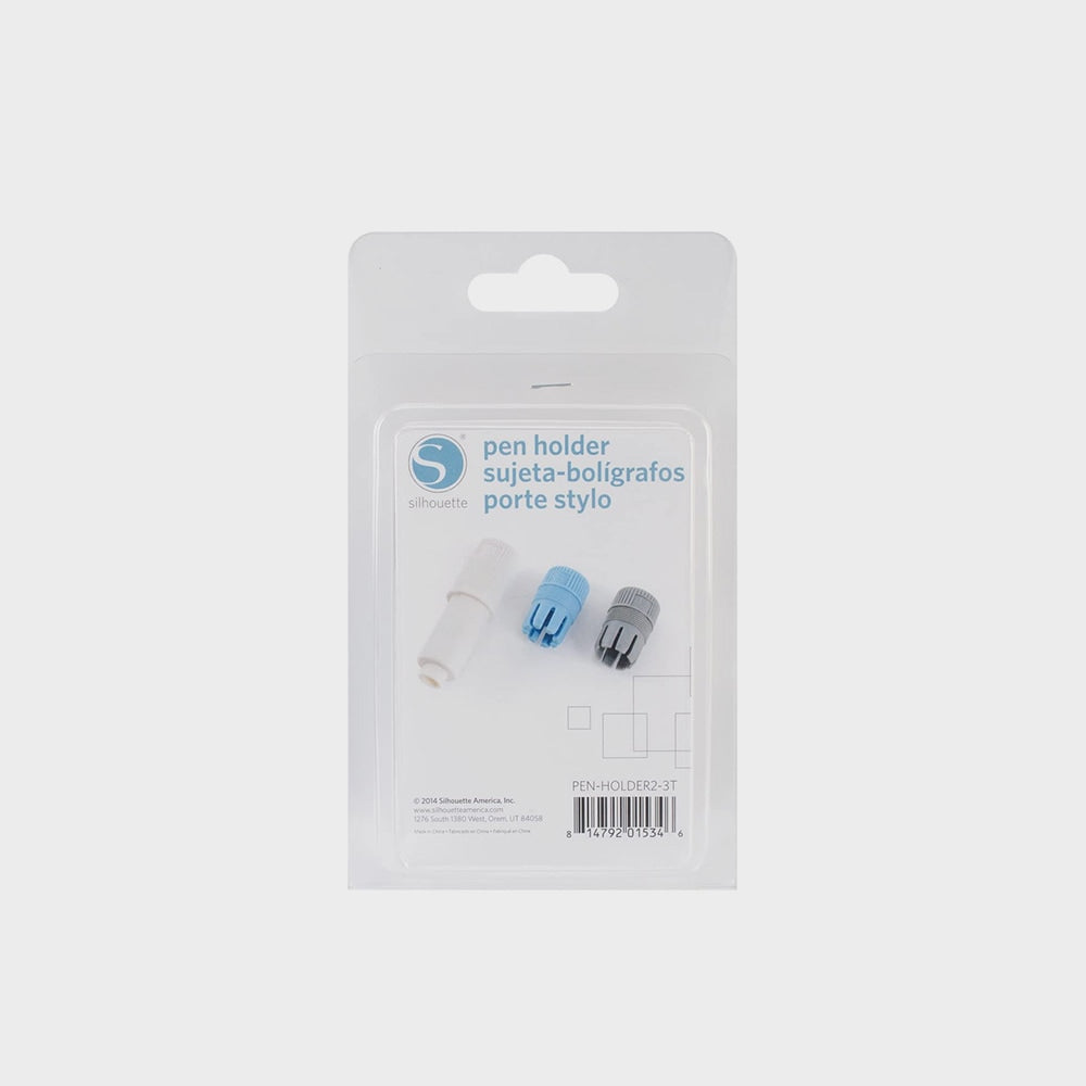 Este Suporte para Canetas Silhueta e o acessorio perfeito para ti, permitindo te usar as tuas canetas favoritas com a tua CAMEO. Com este portalápis, podes utilizar uma variedade de canetas, desde as mais finas ate aos marcadores de ponta mais grossa. Compatível com a Silhouette Portrait®, qualquer CAMEO e Silhouette Curio, este conjunto inclui 1 portalápis e 3 adaptadores roscados (pinças) para diferentes tamanhos: pequeno (azul), medio (branco) e grande (cinzento). O diâmetro das tuas canetas pode variar entre 0,25 e 0,4 polegadas. Com este suporte, podes dar asas à tua criatividade e personalizar os teus projetos de forma única e original. Nunca foi tão fácil e divertido trabalhar com as tuas canetas preferidas na tua CAMEO.