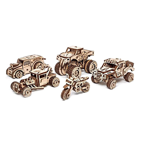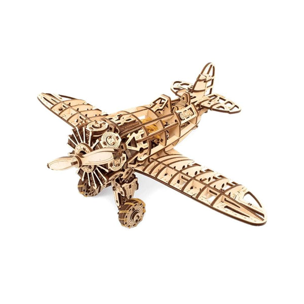 As maquetes ecologicas da Eco Wood Art sao feitas de madeira contraplacada de faia natural, cortadas a laser para uma montagem precisa. Nao e necessario usar ferramentas ou cola, tornando a montagem ainda mais facil e divertida.