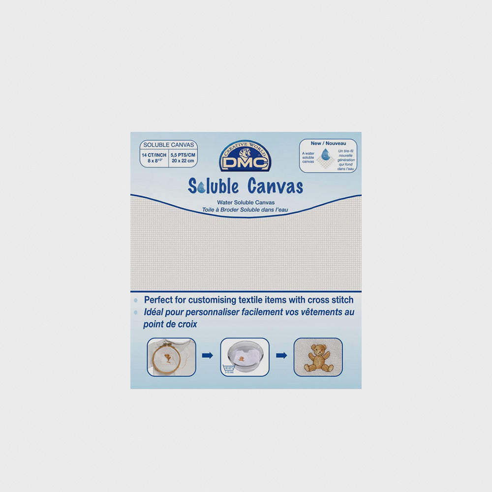 Esta tela para bordar solúvel em agua da DMC e simplesmente incrível! Com uma malha de 5,5 pts/cm, esta folha de 20 x 22 cm permite te criar bordados deslumbrantes em qualquer tecido ou peca de roupa. Com as ferramentas de costura certas, como agulha e dedal, podes dar asas à tua criatividade e personalizar as as tuas pecas favoritas. Basta colocar a folha sobre o tecido, bordar o teu design em ponto de cruz e, depois, mergulhar a peca em agua quente com sabao por 10 minutos. A tela solúvel desaparece, deixando apenas o teu bordado impecavel. Ideal para customizar camisolas, roupinhas de bebe e muito mais, este produto e um must have para todos os amantes da costura. Transforma as as tuas pecas com um toque pessoal e único!