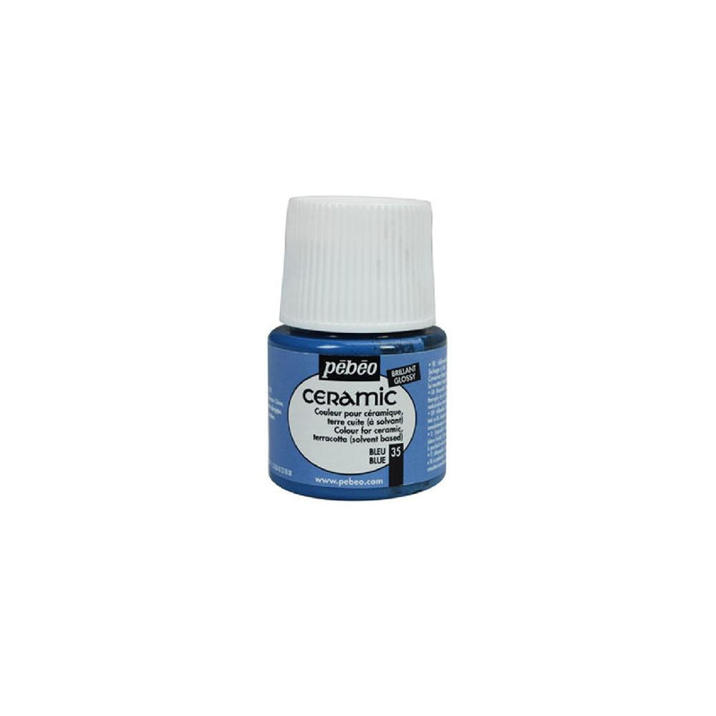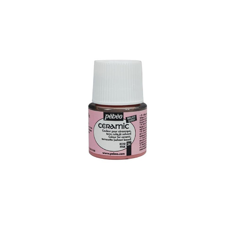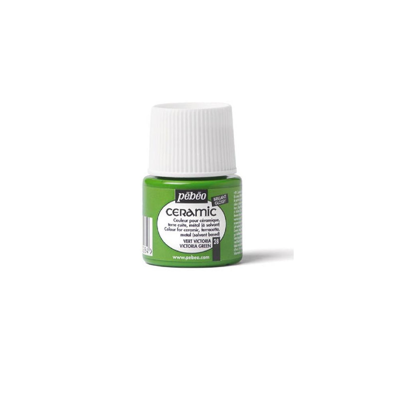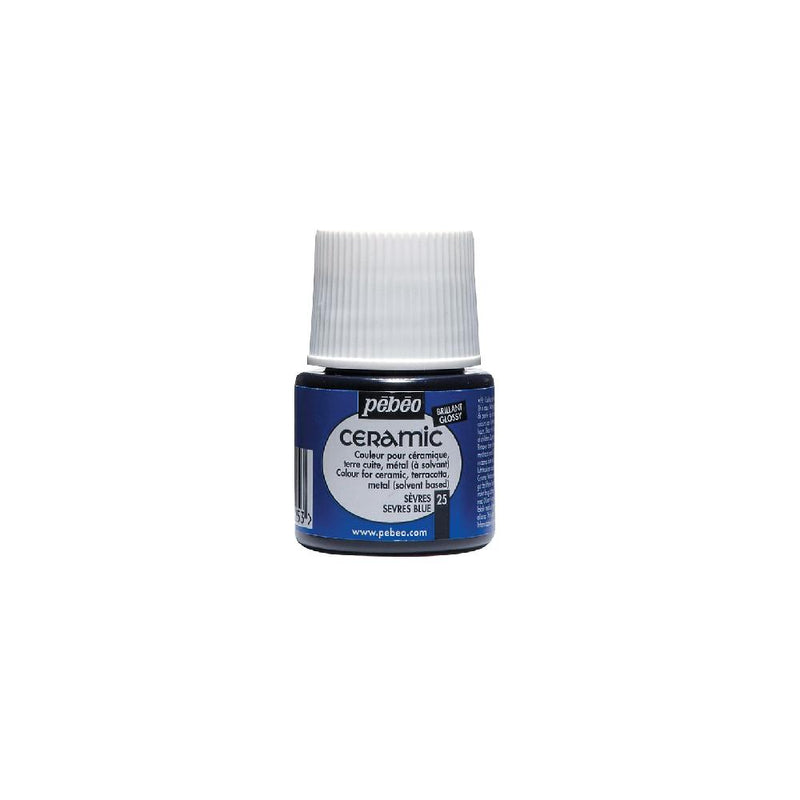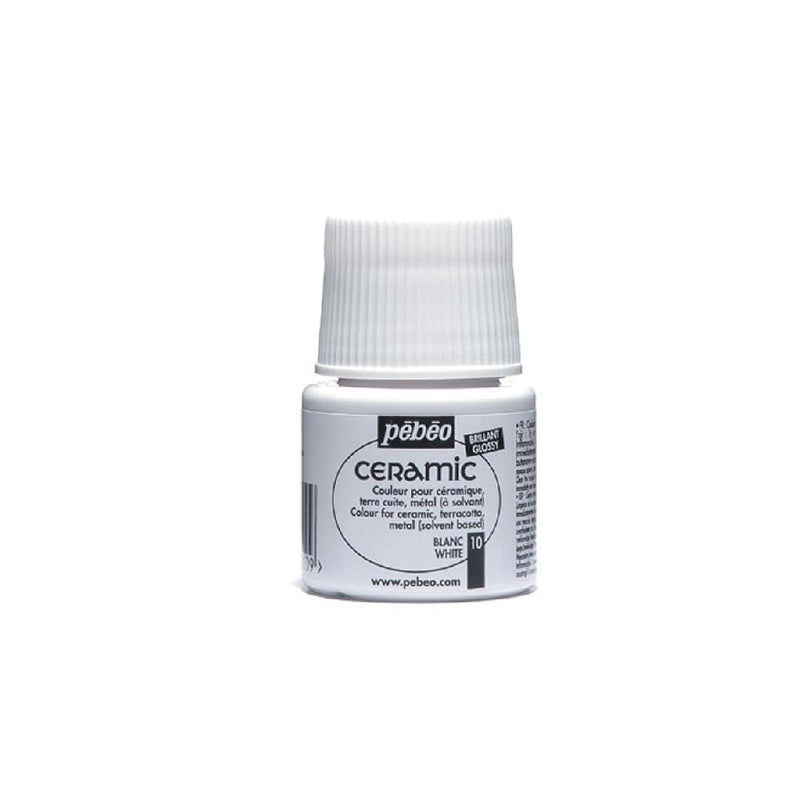 A tinta cerâmica Pebeo Ceramic apresenta uma gama de cores opacas e muito brilhantes (acabamento lacado), de base solvente, ideal para decoração de cerâmica. Também podem ser utilizados em argila e madeira (aplicando primeiro uma camada de primer “filler”) e até mesmo em tecido. Muito resistente à luz.