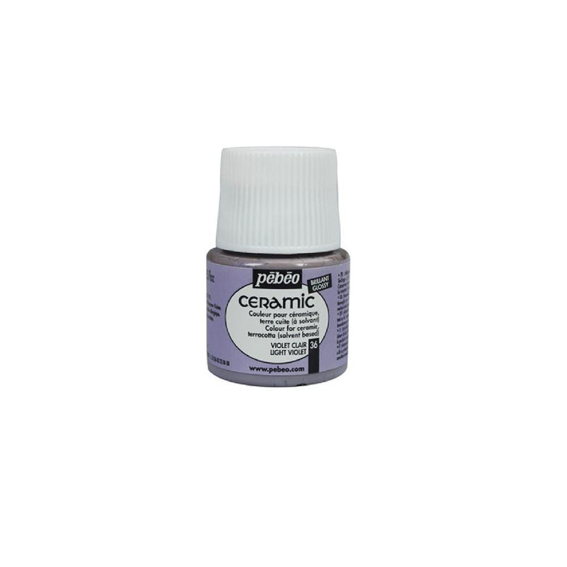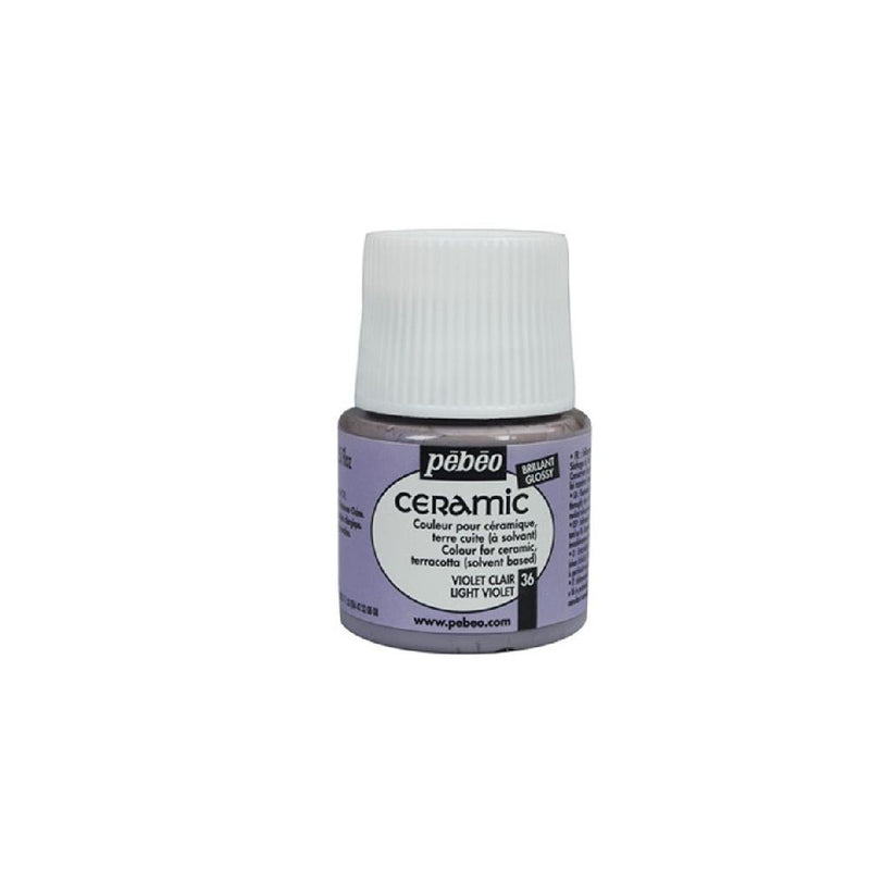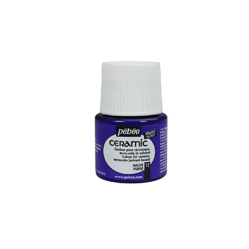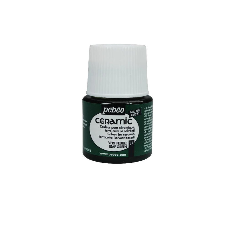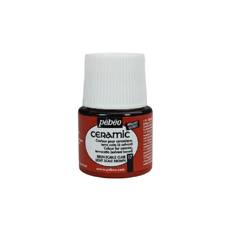 A tinta cerâmica Pebeo Ceramic apresenta uma gama de cores opacas e muito brilhantes (acabamento lacado), de base solvente, ideal para decoração de cerâmica. Também podem ser utilizados em argila e madeira (aplicando primeiro uma camada de primer “filler”) e até mesmo em tecido. Muito resistente à luz.
