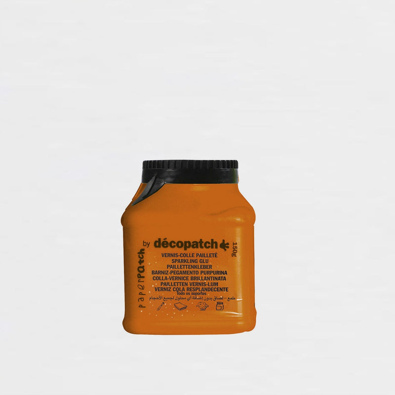 Este verniz cola com purpurina de 150g da Decopatch e simplesmente incrível! Perfeito para os teus trabalhos manuais, este verniz cola com purpurina e ideal para colar todos os tipos de papeis em diferentes superfícies como cerâmica, madeira, vidro, plastico e tecido. Feito à base de agua, e resistente à agua depois de seco, garantindo durabilidade e qualidade aos teus projetos criativos. Ah, e nao te esquecas, evita expor este verniz ao gelo. Com este produto, os teus trabalhos manuais criativos vao ganhar um brilho extra e um toque especial. Experimenta ja e deixa a tua criatividade fluir!